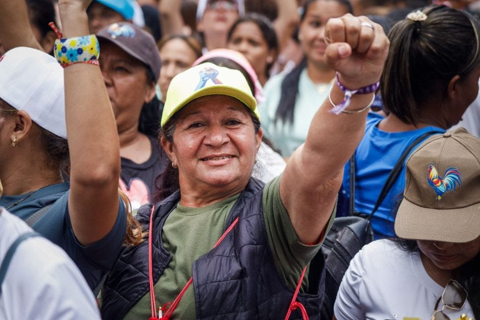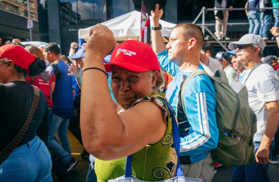 Det var klårt ut frå naturen til angrepet at desse høgreekstreme styrkane av ein spesiell type ynskte å viske ut historiene til Venezuela sine indígenas og zambos samt arbeidarklassen og bøndene. Kvar dag sidan valet har hundre tusen chavistar teke til gatene i Caracas og andre stader. Bileta i dette nyhendebrevet vart teke av Francisco Trías under kvinnevandringen 2. august, av Zoe Alexandra (Peoples Dispatch) under marsjen for arbeidarklassen den 31. juli i forsvar av fedrelandet (to av mange masse mobiliseringar som har funne stad sidan valet), og av meg under eit valmøte den 27. juli. I kvar av desse marsjane, ljoma no volverán — dei kjem ikkje attende — i folkemengda. Oligarkiet, sa dei, vil ikkje komme attende.